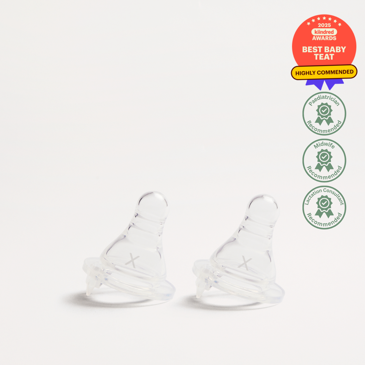Made from ultra-soft, BPA-free silicone, the shape and flexibility of our narrow neck teat encourages a deep, secure latch and a feeding flow that respects your baby’s biology. Whether you’re breast-to-bottle feeding or exclusively bottle-feeding, it’s a teat you and your baby can rely on - and we 100% guarantee it.